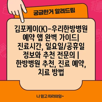 김포케이(K)-우리한방병원 예약 앱 완벽 가이드| 진료시간, 일요일/공휴일 정보와 추천 전문의 | 한방병원 추천, 진료 예약, 치료 방법