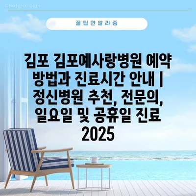 김포 김포예사랑병원 예약 방법과 진료시간 공지 | 정신병원 추천, 전연락, 일요일 및 공휴일 진료 2025 에 대해 자주 묻는 질문 TOP 5