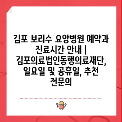 김포 보리수 요양병원 예약과 진료시간 공지 | 김포의료법인동행의료재단, 일요일 및 공휴일, 추천 전연락 에 대해 자주 묻는 질문 TOP 5