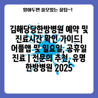 ✅ 김해당당한방병원의 예약 방법과 진료 시간을 한눈에 확인해 보세요.