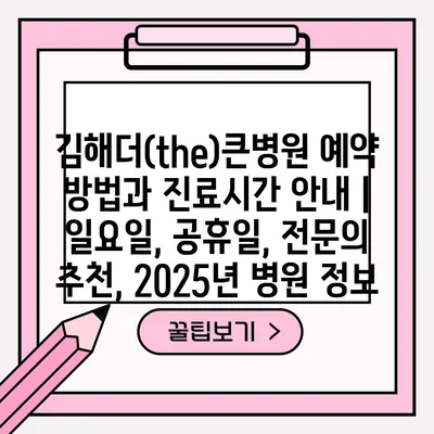 김해더(the)큰병원 예약 방법과 진료시간 안내 | 일요일, 공휴일, 전문의 추천, 2025년 병원 정보