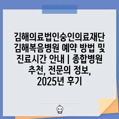 김해의료법인숭인의료재단 김해복음병원 예약 방법 및 진료시간 안내 | 종합병원 추천, 전문의 정보, 2025년 후기