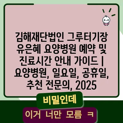 김해재단법인 그루터기장 유은혜 요양병원 예약 및 진료시간 안내 가이드 | 요양병원, 일요일, 공휴일, 추천 전문의, 2025