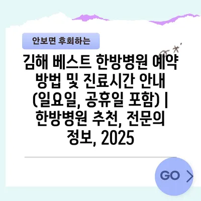 김해 베스트 한방병원 예약 방법 및 진료시간 공지 (일요일, 공휴일 포함) | 한방병원 추천, 전연락 정보, 2025 에 대해 자주 묻는 질문 TOP 5