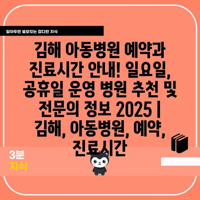 김해 아동병원 예약과 진료시간 공지! 일요일, 공휴일 운영 병원 추천 및 전연락 정보 2025 | 김해, 아동병원, 예약, 진료시간 에 대해 자주 묻는 질문 TOP 5