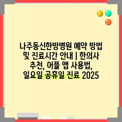 나주동신한방병원 예약 방법 및 진료시간 공지 | 한의사 추천, 어플 앱 사용법, 일요일 공휴일 진료 2025
