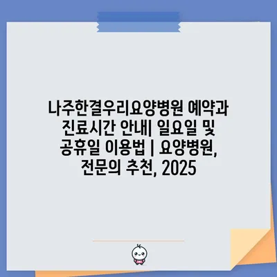 ✅ 나주한결우리요양병원의 예약 방법과 진료시간을 알아보세요!