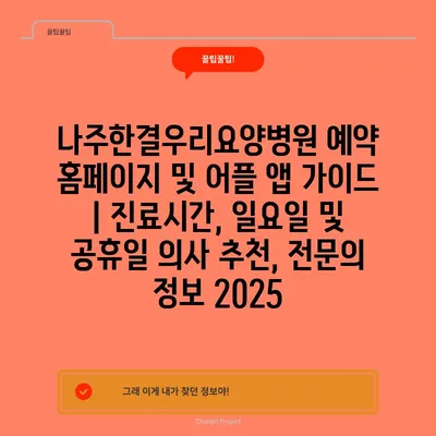 나주한결우리요양병원 예약 홈페이지 및 어플 앱 설명서 | 진료시간, 일요일 및 공휴일 의사 추천, 전연락 정보 2025