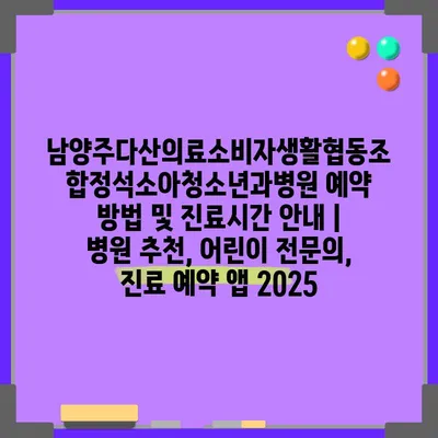 남양주다산의료소비자생활협동조합정석소아청소년과병원 예약 방법 및 진료시간 공지 | 병원 추천, 어린이 전연락, 진료 예약 앱 2025