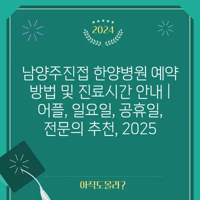 남양주진접 한양병원 예약 방법 및 진료시간 공지 | 어플, 일요일, 공휴일, 전연락 추천, 2025에 대해 자주 묻는 질문 TOP 5