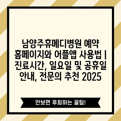 ✅ 남양주휴메디병원 예약 앱 사용법을 지금 바로 알아보세요!