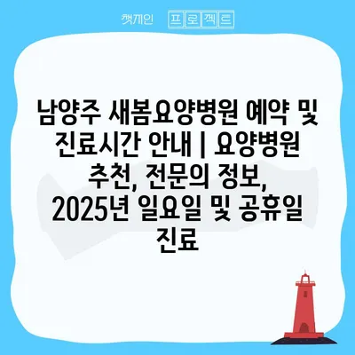 남양주 새봄요양병원 예약 및 진료시간 안내 | 요양병원 추천, 전문의 정보, 2025년 일요일 및 공휴일 진료