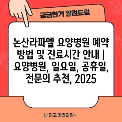 논산라파엘 요양병원 예약 방법 및 진료시간 공지 | 요양병원, 일요일, 공휴일, 전연락 추천, 2025