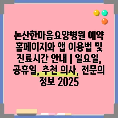 ✅ 논산한마음요양병원의 예약 방법을 자세히 알아보세요.