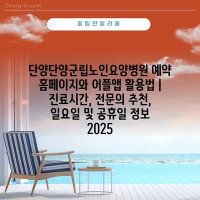 단양단양군립노인요양병원 예약 홈페이지와 어플앱 활용법 | 진료시간, 전연락 추천, 일요일 및 공휴일 정보 2025에 대해 알아보겠습니다.