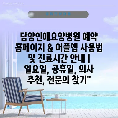 ✅ 담양인애요양병원의 예약 방법과 꿀팁을 알아보세요.