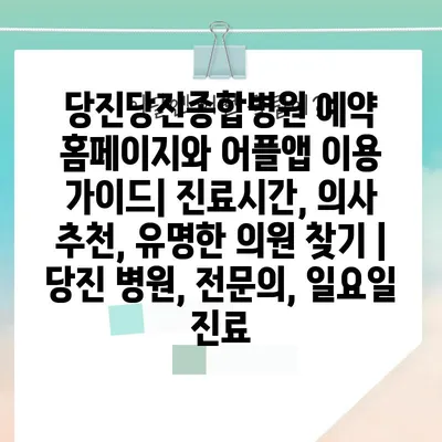 당진당진종합병원 예약 홈페이지와 어플앱 이용 설명서| 진료시간, 의사 추천, 유명한 의원 찾기 | 당진 병원, 전연락, 일요일 진료 에 대해 자주 묻는 질문 TOP 5