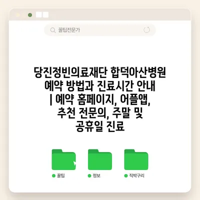 당진정빈의료재단 합덕아산병원 예약 방법과 진료시간 안내 | 예약 홈페이지, 어플앱, 추천 전문의, 주말 및 공휴일 진료