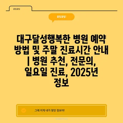 대구달성행복한 병원 예약 방법 및 주말 진료시간 안내 | 병원 추천, 전문의, 일요일 진료, 2025년 정보