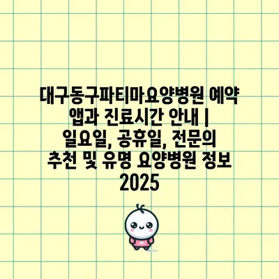 대구동구파티마요양병원 예약 앱과 진료시간 안내 | 일요일, 공휴일, 전문의 추천 및 유명 요양병원 정보 2025
