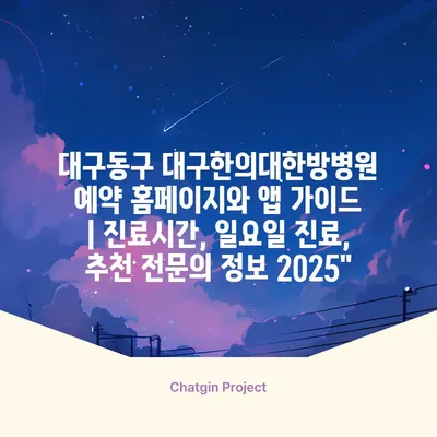 ✅ 대구한의대한방병원 예약 방법과 필요 정보를 지금 확인해 보세요.