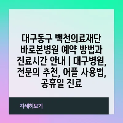 ✅ 대구동구 백천의료재단 바로본병원의 예약 방법과 진료 시간을 확인해 보세요.