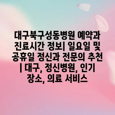 대구북구성동병원 예약과 진료시간 정보| 일요일 및 공휴일 정신과 전연락 추천 | 대구, 정신병원, 인기 장소, 의료 서비스에 대해 자주 묻는 질문 TOP 5
