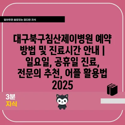 대구북구침산제이병원 예약 방법 및 진료시간 안내 | 일요일, 공휴일 진료, 전문의 추천, 어플 활용법 2025
