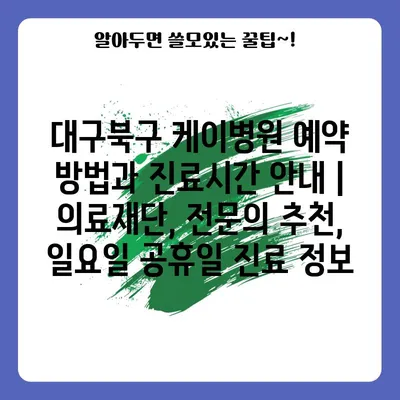 대구북구 케이병원 예약 방법과 진료시간 공지 | 의료재단, 전연락 추천, 일요일 공휴일 진료 정보에 대해 자주 묻는 질문 TOP 5