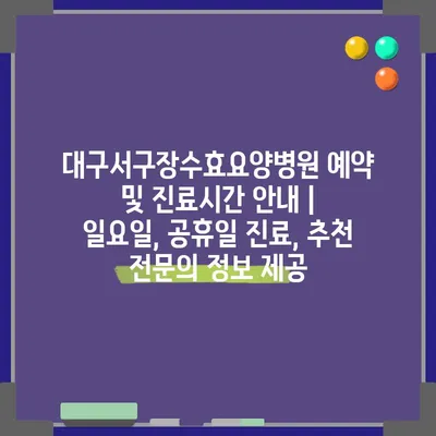✅ 대구서구장수효요양병원 진료시간과 예약 방법을 지금 바로 알아보세요.