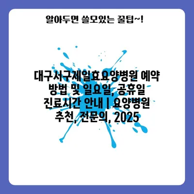 대구서구제일효요양병원 예약 방법 및 일요일, 공휴일 진료시간 공지 | 요양병원 추천, 전연락, 2025 에 대해 자주 묻는 질문 TOP 5