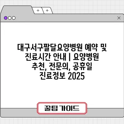 ✅ 대구서구팔달요양병원의 진료시간과 예약 방법을 지금 바로 알아보세요!