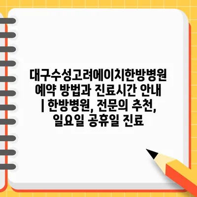 ✅ 대구수성고려에이치한방병원의 예약 방법을 자세히 알아보세요.