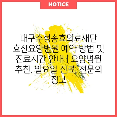 대구수성송효의료재단 효산요양병원 예약 방법 및 진료시간 공지
