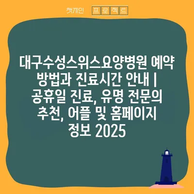 대구수성스위스요양병원 예약 방법과 진료시간 안내 | 공휴일 진료, 유명 전문의 추천, 어플 및 홈페이지 정보 2025