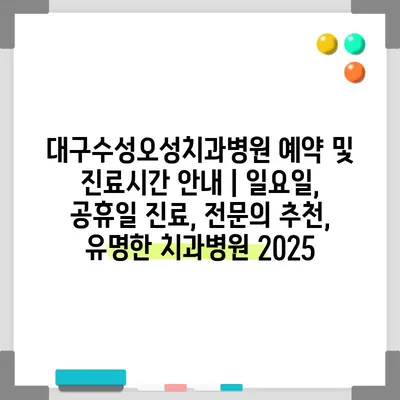 대구수성오성치과병원 예약 및 진료시간 공지 | 일요일, 공휴일 진료, 전연락 추천, 유명한 치과병원 2025 에 대해 자주 묻는 질문 TOP 5