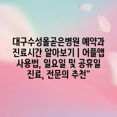 대구수성올곧은병원 예약과 진료시간 알아보기 | 어플앱 사용법, 일요일 및 공휴일 진료, 전연락 추천에 대해 자주 묻는 질문 TOP 5
