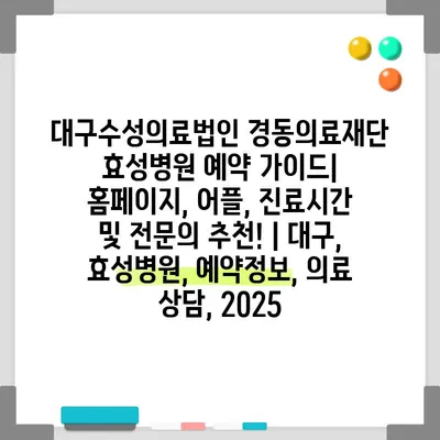 대구수성의료법인 경동의료재단 효성병원 예약 설명서| 홈페이지, 어플, 진료시간 및 전연락 추천! | 대구, 효성병원, 예약정보, 의료 상담, 2025 에 대해 자주 묻는 질문 TOP 5
