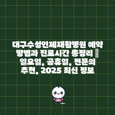 대구수성인제재활병원 예약 방법과 진료시간 총정리 | 일요일, 공휴일, 전연락 추천, 2025 최신 정보에 대해 소개합니다.