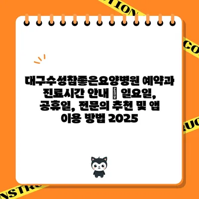 대구수성참좋은요양병원 예약과 진료시간 공지 | 일요일, 공휴일, 전연락 추천 및 앱 이용 방법 2025에 대해 알려알려드리겠습니다.