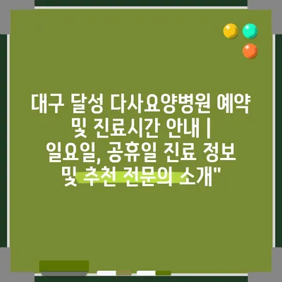 대구 달성 다사요양병원 예약 및 진료시간 안내 | 일요일, 공휴일 진료 정보 및 추천 전문의 소개”