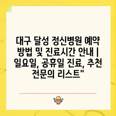 대구 달성 정신병원 예약 방법 및 진료시간 안내 | 일요일, 공휴일 진료, 추천 전문의 리스트”