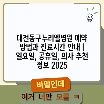 대전동구누리엘병원 예약 방법과 진료시간 공지 | 일요일, 공휴일, 의사 추천 정보 2025에 대해 알아보겠습니다.