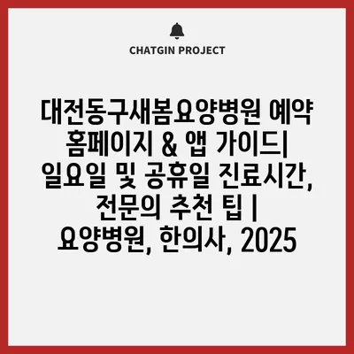대전동구새봄요양병원 예약 홈페이지 & 앱 설명서| 일요일 및 공휴일 진료시간, 전연락 추천 팁 | 요양병원, 한의사, 2025