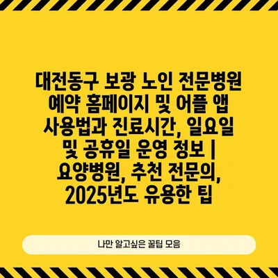 대전동구 보광 노인 전문병원 예약 홈페이지 및 어플 앱 사용법과 진료시간, 일요일 및 공휴일 운영 정보 | 요양병원, 추천 전문의, 2025년도 유용한 팁