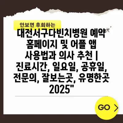 대전서구다빈치병원 예약 홈페이지 및 어플 앱 사용법과 의사 추천 | 진료시간, 일요일, 공휴일, 전연락, 잘보는곳, 유명한곳 2025