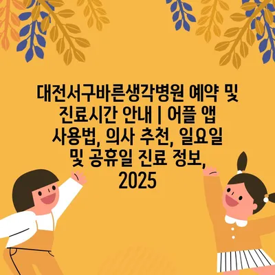 대전서구바른생각병원 예약 및 진료시간 공지 | 어플 앱 사용법, 의사 추천, 일요일 및 공휴일 진료 정보, 2025 에 대해 자주 묻는 질문 TOP 5