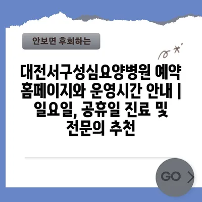 대전서구성심요양병원 예약 홈페이지와 운영시간 안내 | 일요일, 공휴일 진료 및 전문의 추천