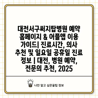 대전서구써지탑병원 예약 홈페이지 & 어플앱 이용 설명서| 진료시간, 의사 추천 및 일요일 공휴일 진료 정보 | 대전, 병원 예약, 전연락 추천, 2025