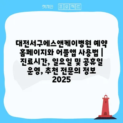 대전서구에스앤케이병원 예약 홈페이지와 어플앱 사용법 | 진료시간, 일요일 및 공휴일 운영, 추천 전연락 정보 2025 에 대해 자주 묻는 질문 TOP 5